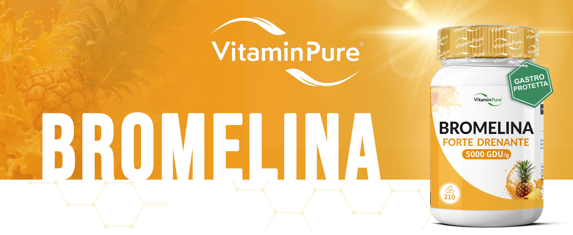 - BROMELINA FORTE DRENANTE: La bromelina forte è un enzima proteolitico estratto dall'ananas, noto per le sue proprietà anti-infiammatorie e diuretiche. La bromelina forte drenante facilita la digestione delle proteine, migliorando l'assorbimento dei nutrienti e riducendo i disturbi digestivi come il gonfiore e la pesantezza. Se stai cercando un drenante forte, la bromelina VitaminPure è un'ottima scelta, soprattutto se desideri anche un effetto anticellulite nella tua routine di benessere.