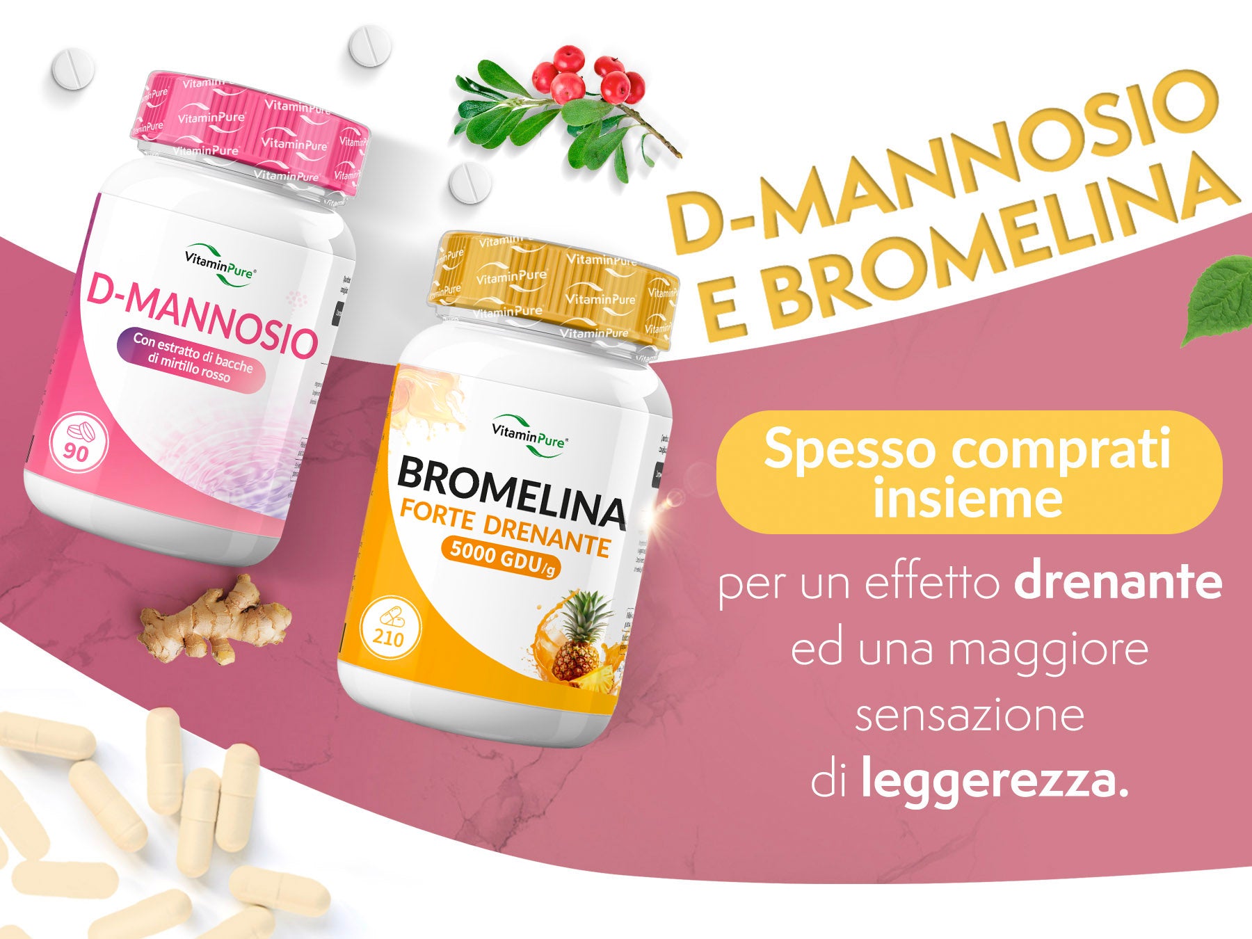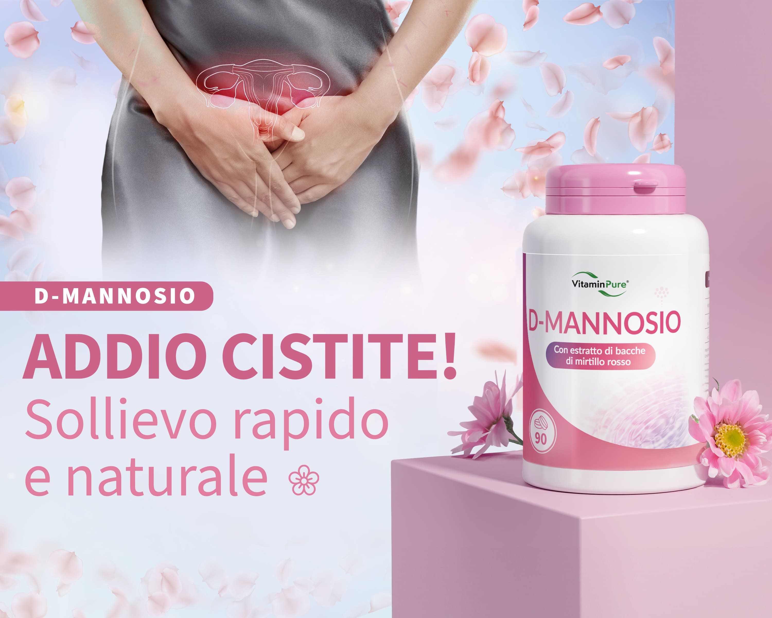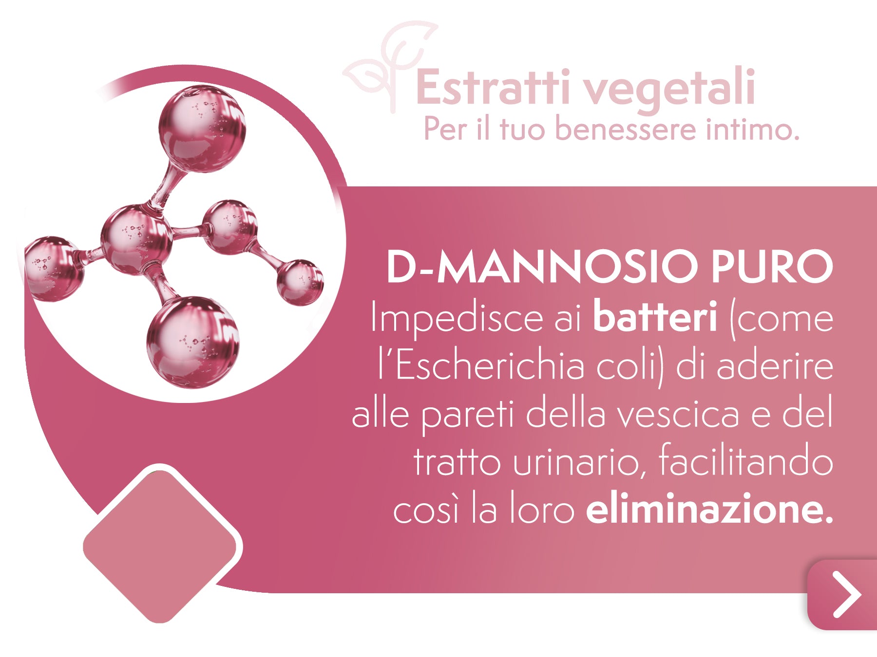 D-Mannosio; Estratto secco di Mirtillo Rosso (Vaccinium macrocarpon Aiton, frutto) titolato al 30% in proantocianidine; Agente di carica: Cellulosa microcristallina.