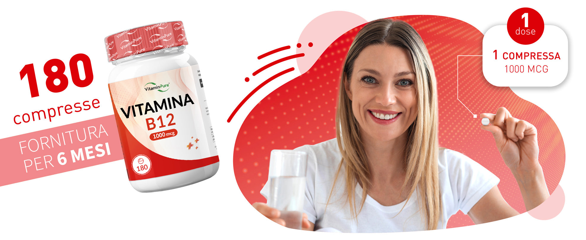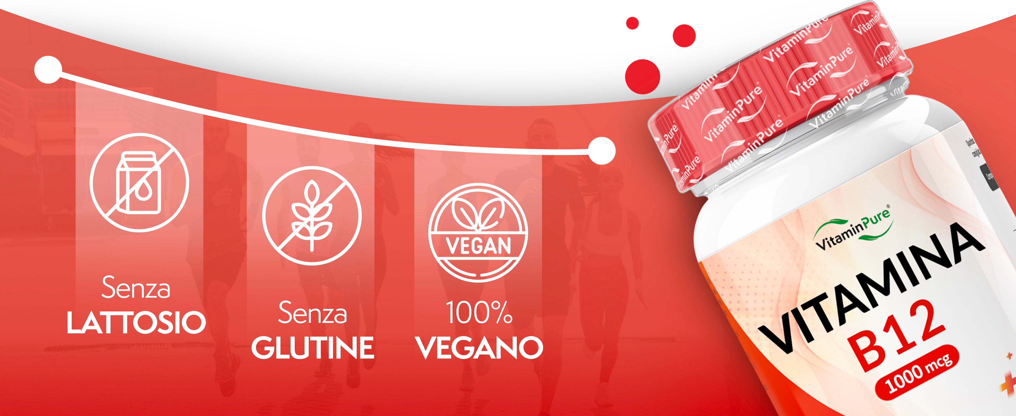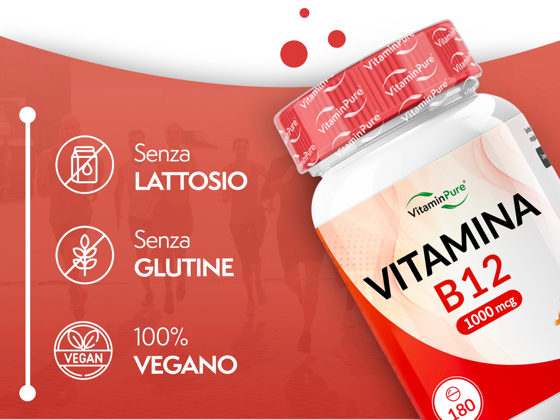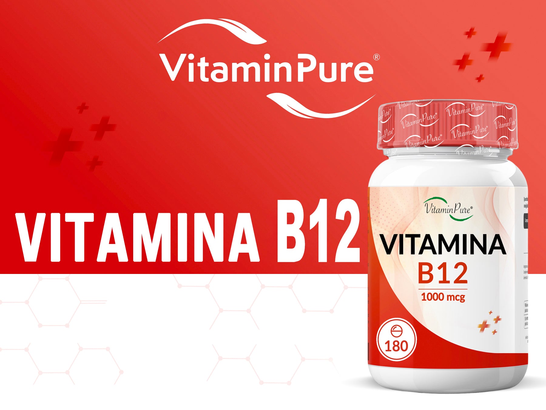 - VITAMINA B12 PURA AD ALTO DOSAGGIO : L’innovativa formula di VitaminPure ha permesso di ottenere un integratore alimentare di Vitamina B12 puro ad alto dosaggio garantendo 1000 mcg di Vitamina B 12 (cianocobalamina) per ogni singola compressa.